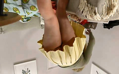 belle blonde mignonne chaude et sexy fait un essai pour une jupe de tennis et une culotte, elle ne porte pas de sous-vêtements et écarte les jambes