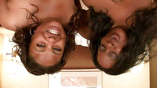 les brunes lesbiennes léchant la chatte hime marie et jade baker jouent avec de gros seins naturels