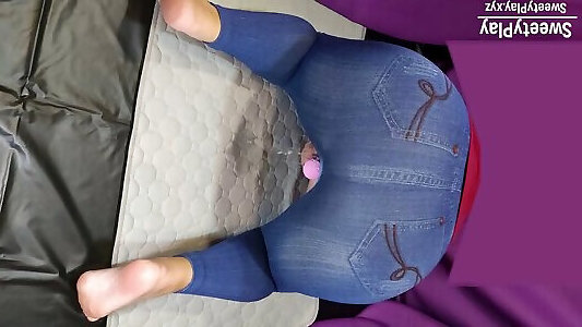 cul xxl en denim pissant avec une baguette