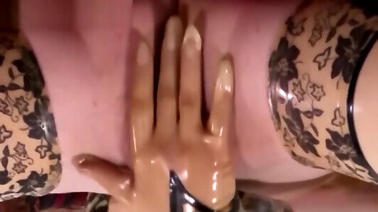 pawg dans des gants en latex et une compilation vidéo de lingerie sexy