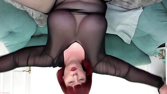 dame lynn, femme mûre de grande taille, montre ses atouts avant de se branler