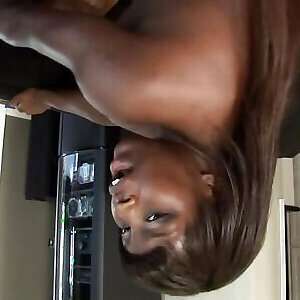 une méga-salope noire aux formes époustouflantes chevauche une grosse bite noire, puis reçoit une éjaculation interne