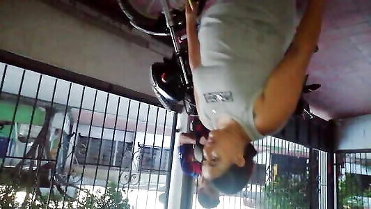une asiatique brune suce et baise une grosse bite noire dans le jardin