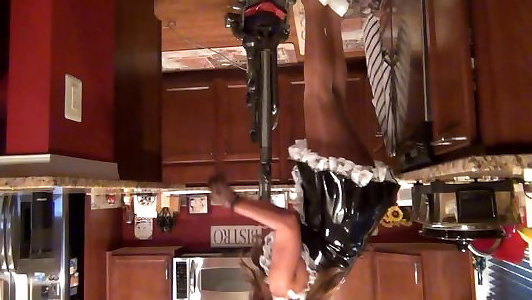 la femme britannique haley danse un strip-tease en uniforme de femme de ménage