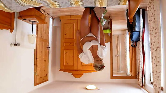tout en nettoyant limmeuble, la folle folle eva met en valeur ses melons xxl