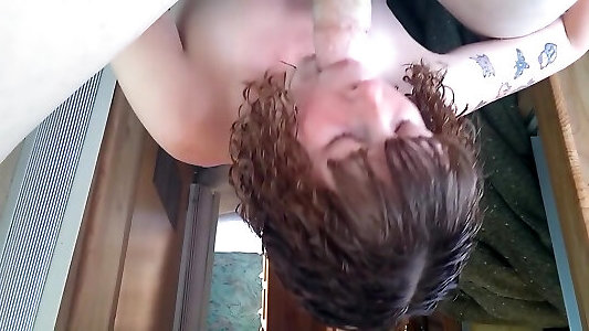 la joie de la lavande dans le point de vue de la virilité adorant la méga-salope suce et montre du sperme dans la bouche