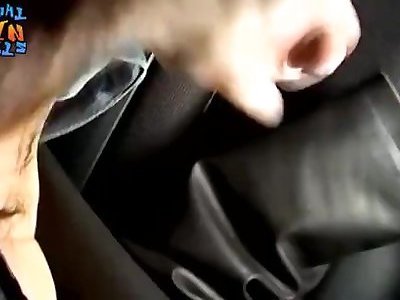 latina ladyboy boit du sperme de voyou blanc suspendu