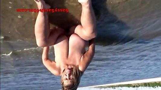 milf sarah 40m avec de longs nichons massifs sur le rivage de la mer