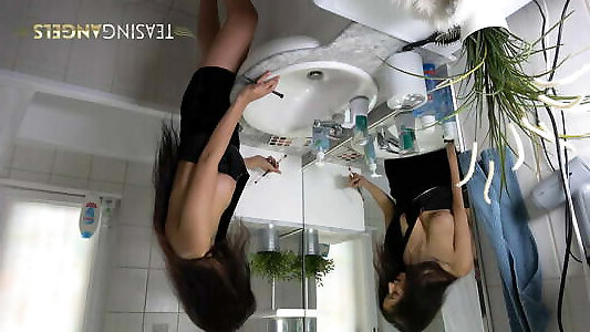 longue chatte, longs seins et lessive puis redbull sous la douche