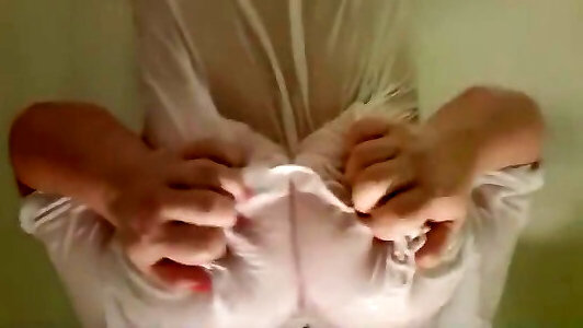 maman mature lave ses gros seins, son cul et sa chatte poilue avant le sexe