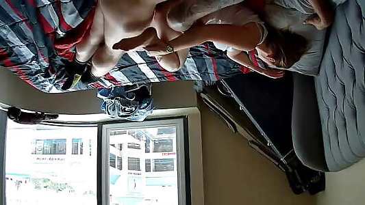 il ma surpris en train de me masturber et ma baisé fort derrière mes gros seins naturels suspendus et se balançant