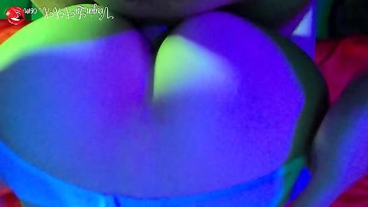alex aux gros seins bouclés se masturbe et suce ses tétons gigantesques