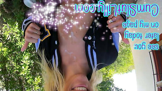 une milf blonde au melon épais goûte du sperme nacré blanc