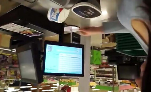 une petite blonde aide la cliente pendant quelle se fait lécher le trou du cul derrière le comptoir