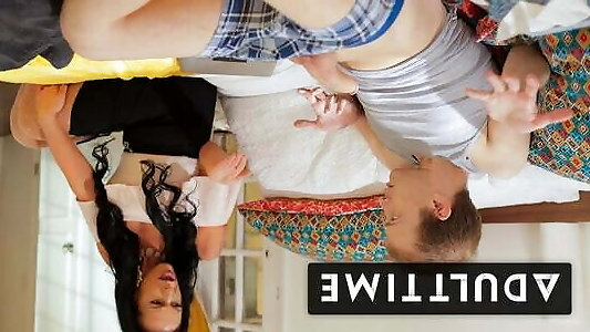 adolescent brune se masturbe en solo dans son lit puis a une séance de baise avec un homme