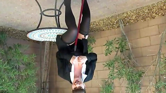 mère nue en string et chaussures à lextérieur