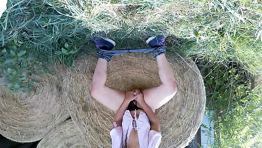 poupée super-torride appétissante martelant ferme à la campagne sur des balles de foin