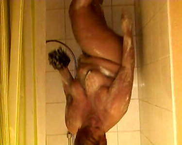 regardez ma femme milf exhiber son corps bronzé et ses gros seins naturels tout en prenant une douche et en se rasant la chatte