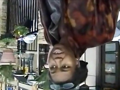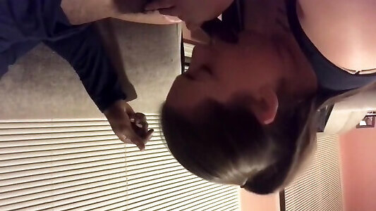 une fille noire donne sa bouche, sa chatte et son joli visage à son mec blanc pendu