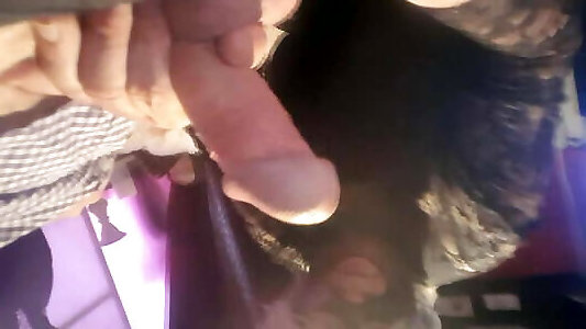 lessai de la mini-jupe en cuir sur le transport mène à une grosse éjaculation