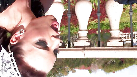 milf la femme chaude avec le taureau à la balustrade sa grosse tige de couleur foncée