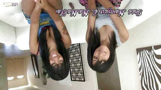 2 lezzies aux cheveux foncés avec un gros butin vont malicieusement manger chacun