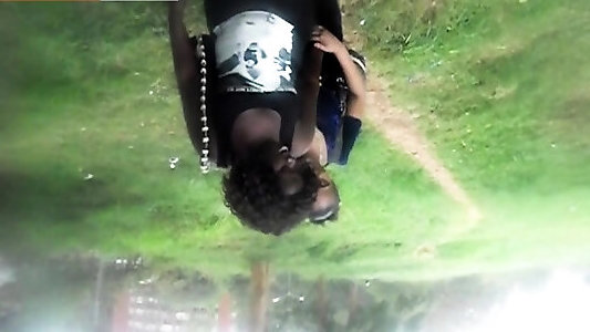 promenade publique dans le parc, baise intime de fille africaine avec un gode