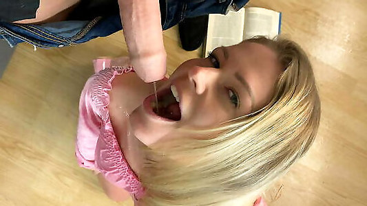 ma demi-soeur me surprend en suçant ma bite et en jouant avec mon sperme dans sa bouche!
