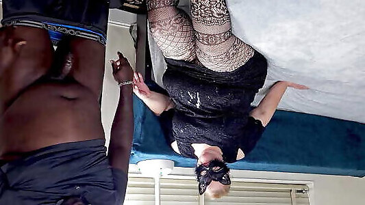 fille noire en bas sexy avale la bite