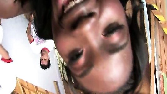 une mexicaine potelée se faufile et baise deux gros étalons noirs