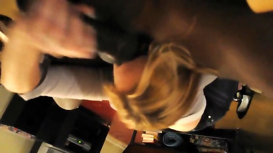 tarra aux cheveux clairs prend boss licking under desk bite blanche et noire