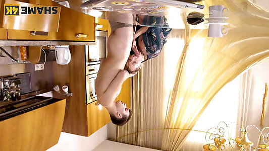 une salope blonde aux frênes qui baise avec son mari insatiable dans la cuisine