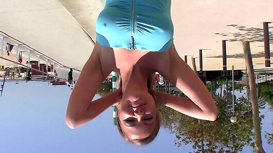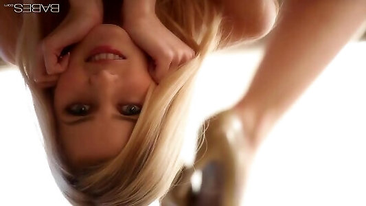jolie fille blonde tente de monter le salami avec sa chatte serrée