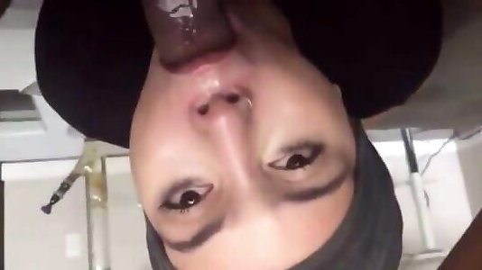 salope ébène suce une grosse bite blanche et avale une grosse charge