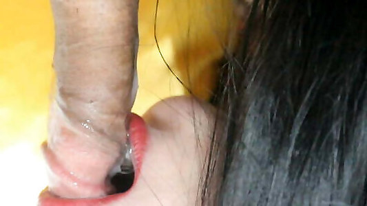 fellation lente et langue samusent, frein de manger, gros plan pov