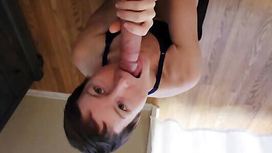 une fille blanche aux yeux bleus suce pour une énorme bouchée de foutre