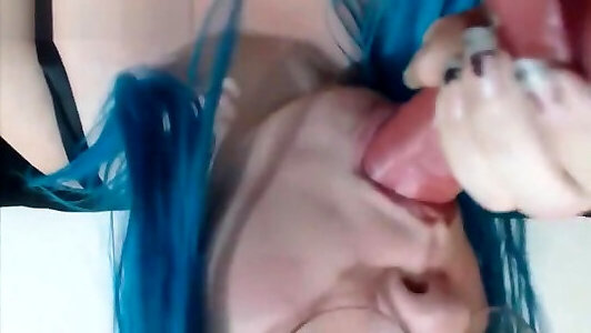 la première fois aux cheveux bleus suce la bite dure jusquà ce que jism dans son gosier