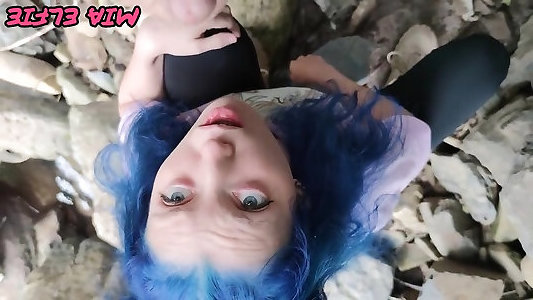 une étudiante aux cheveux bleus suce bien au bord de leau et fait du bon sexe