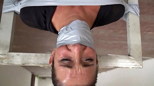 une salope blonde coquine qui sauto-retient se branle pour jouir toute scotchée et bâillonnée dans la chambre!