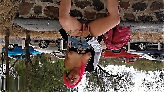 chica caliente masturbandose en la calle, y los autos pasando justo detras