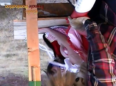 attaché comme un porc et cagoulé en bas et talons hauts-victime enseignée