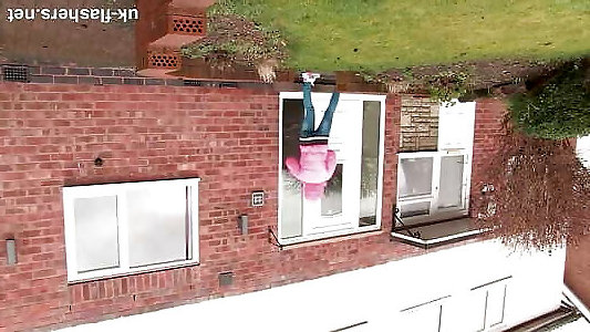 une anglaise courbée exhibe ses pare-chocs en public
