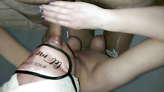 une fille sexuellement positive se gargarise sur une bite, puis suce une bite raide