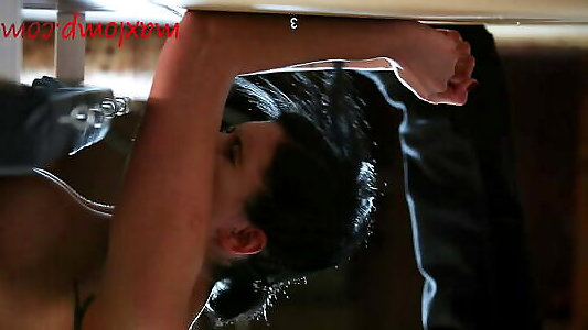 monsieur le féroce baise la femme de chambre aux cheveux noirs super sexy en laisse dans la douche
