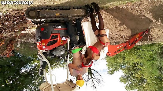 des bimbos blondes torrides incitent 2 garçons constructeurs à les écraser