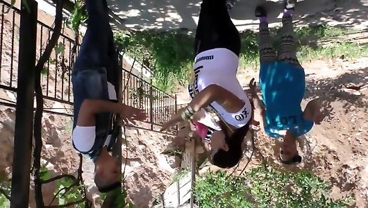perceuse bulgare, sa copine avec sangle sur bâton de baise
