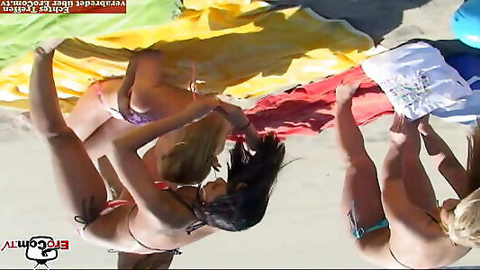 lesbienne à 4 voies avec des jouets sexuels et deux filles aux cheveux noirs et deux blondes