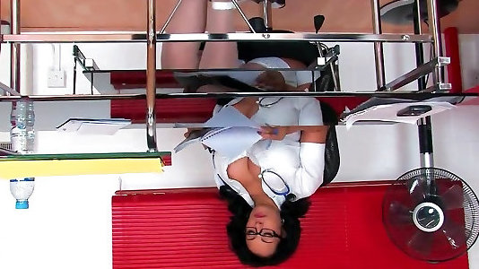 salope en caoutchouc à la clinique se masturbe avec un gros gode et suce profondément