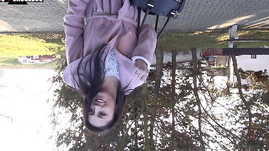 une ado époustouflante avec des nichons innés se promène dans le van dun étranger