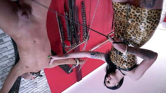 la dominatrice fait jouir sa marionnette avec ses pieds